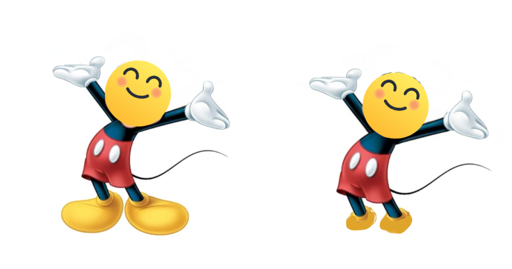 キャラクターとしてかわいいのはもちろん左でしょうが、人間の格好としてとらえた時に、違和感がないのは右でしょう。背が高いのは左ですが、すっきりとして見えるのは右だと思います。