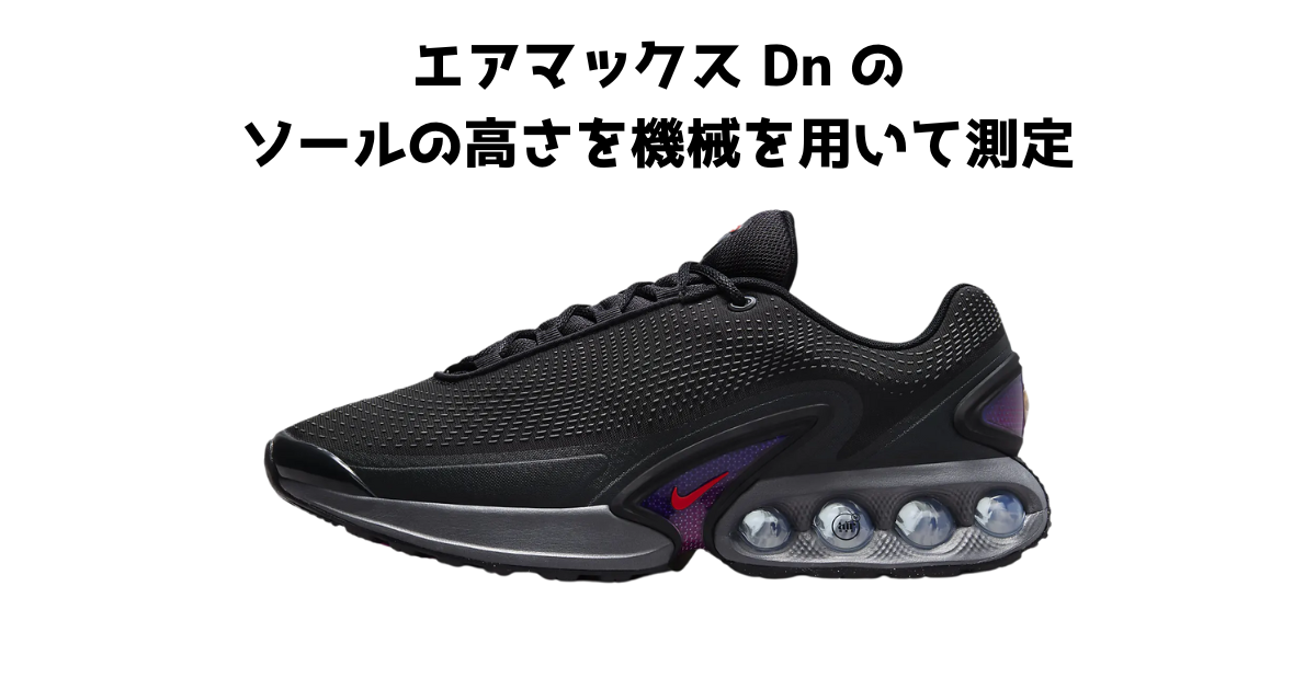 今回はナイキの比較的新しいエアマックスシリーズ、エアマックスDnのソールの高さ(ヒールの高さ)を測定します。