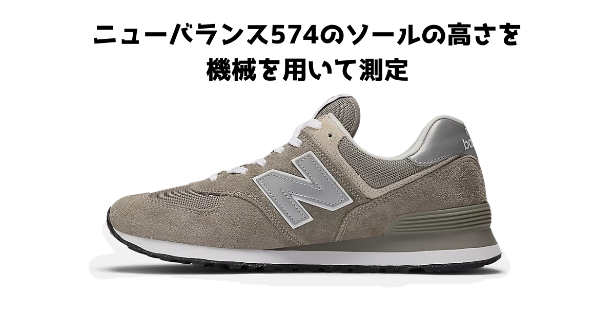 今回はニューバランス574のソールの高さ(ヒールの高さ)を測定します。