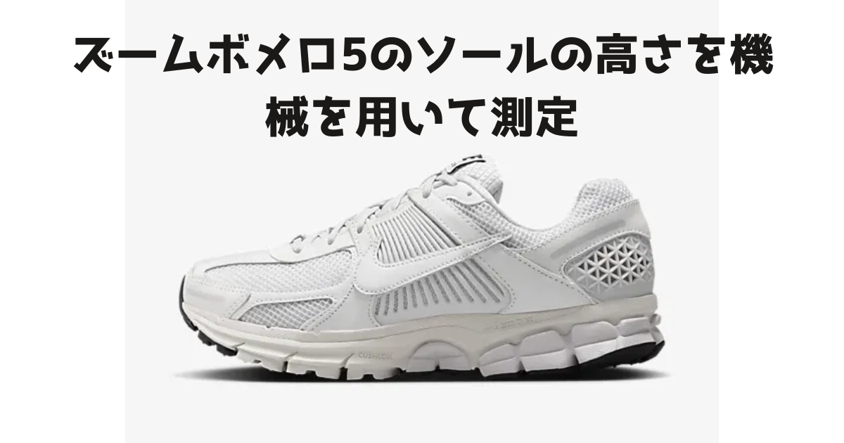 今回はズーム ボメロ 5のソールの高さ(ヒールの高さ)を測定します。